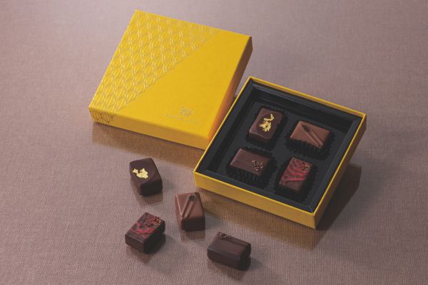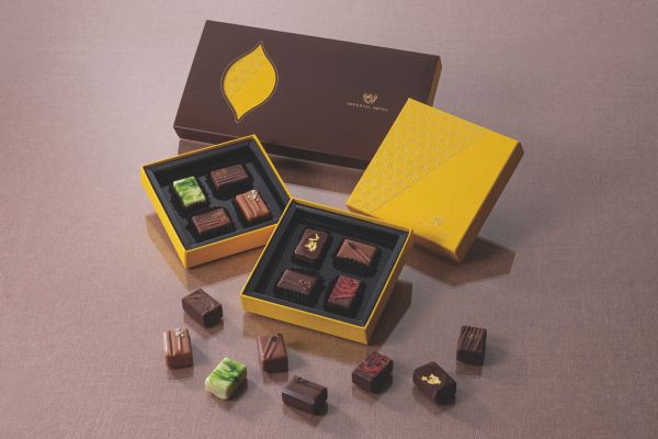 人気のブルーベリーパイを表現したガナッシュチョコレートや、帝国ホテル2代目本館(通称「ライト館」)の外壁のスクラッチタイルを模したチョコレートなど、帝国ホテルを一箱に詰めた期間限定のチョコレートボックスです。